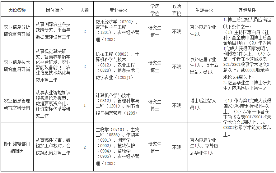 中國農業科學院農業信息研究所2024年度第二批公開招聘公告
