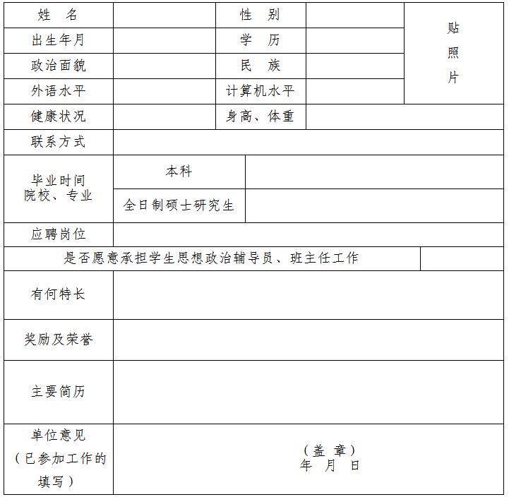 2019年公開招聘工作人員報名表