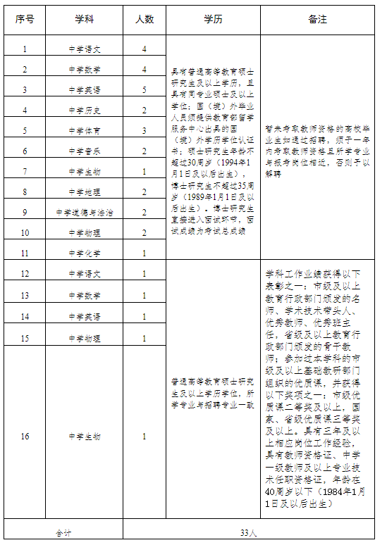 (4)具有3年及以上相應崗位工作經驗,具有教師資格證、中學一級教師及以上專業技術任職資格證,年齡在40周歲以下(1984年1月1日及以后出生)。