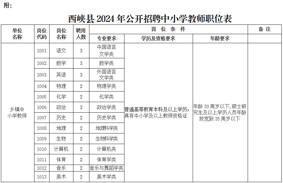 招聘中小學(xué)教師30名。招聘職位及名額見《西峽縣2024年公開招聘中小學(xué)教師職位表》(附后)。