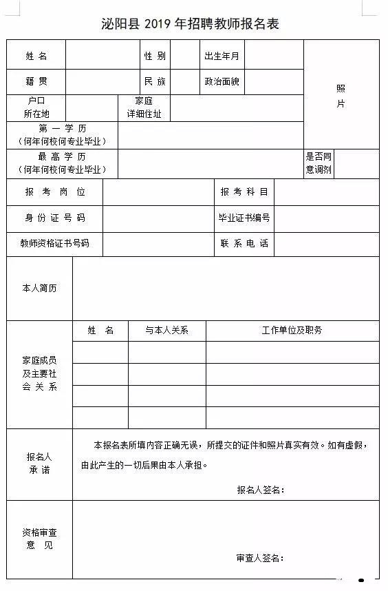 繳費完成后,考生須自行用A4紙打印《泌陽縣2019年招聘教師報名表》一式2份,以備面試資格確認時使用。