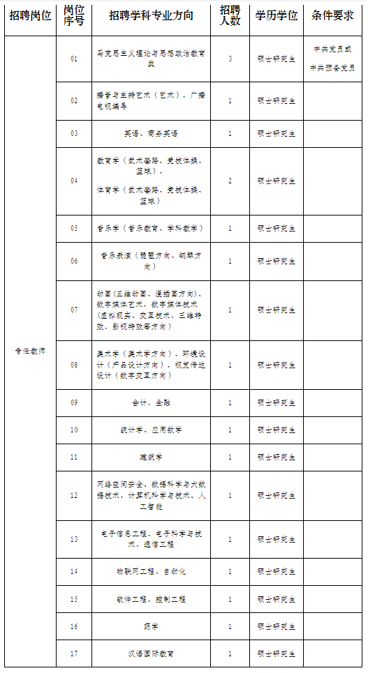 詳見(jiàn)《黃淮學(xué)院2024年碩士專(zhuān)任教師招聘計(jì)劃表》(附件)。