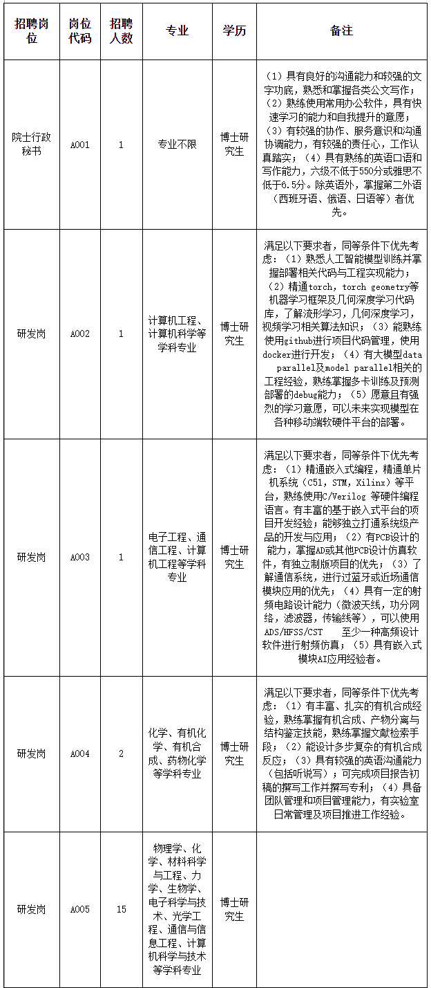 7.符合崗位所需要的其它條件,特殊優秀人才根據研究院發展需要可適當放寬條件。
