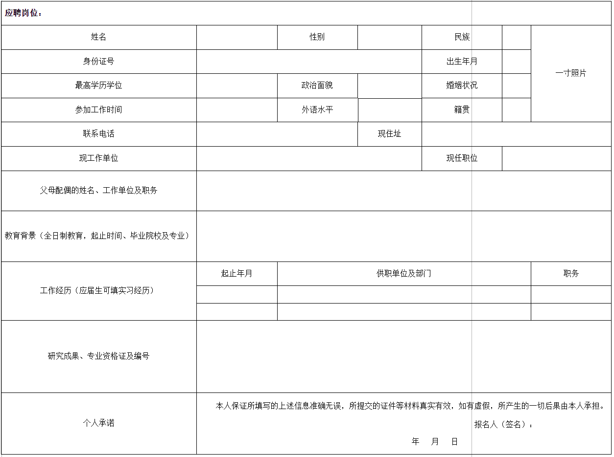 河南省柔性電子產業技術研究院公開招聘報名登記表