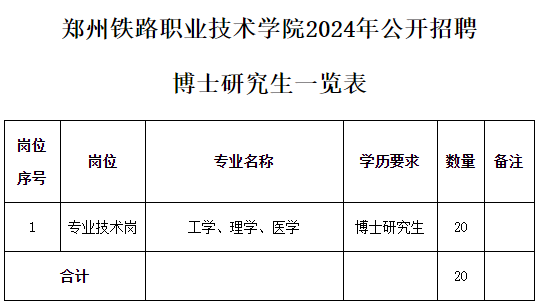 6.崗位所需的專業和其他條件詳見《鄭州鐵路職業技術學院2024年公開招聘博士研究生一覽表》。