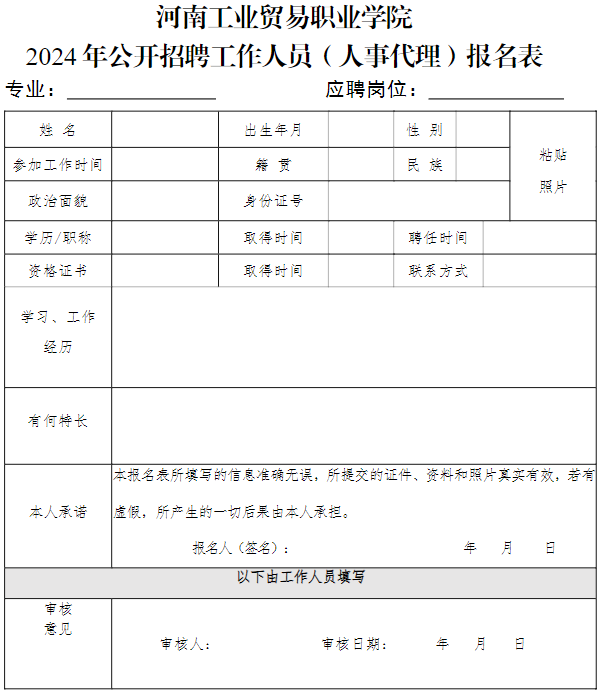 附表:2.河南工業貿易職業學院2024年公開招聘工作人員(人事代理)報名表