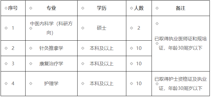 郵件標(biāo)題格式:“最高學(xué)歷+崗位(中醫(yī)科)+姓名+手機(jī)號(hào)”