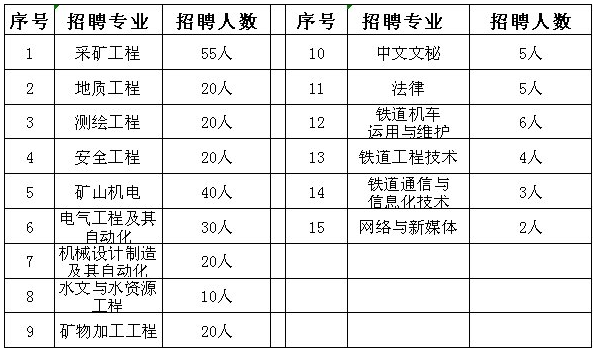 (3)2021-2025年全日制統招專科學歷,礦山機電專業,從事直管礦井及地面生產經營單位機電崗位,招錄40人;