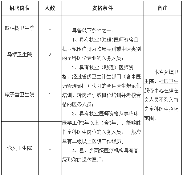 (2)特崗全科醫生服務期滿后,鼓勵留在鄉鎮衛生院工作,符合事業單位聘用工作人員條件的,可按有關規定將其納入常設崗位,并納入鄉鎮衛生院編制管理。