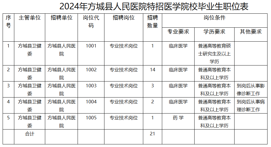 附件 2024年方城縣人民醫(yī)院特招醫(yī)學(xué)院校畢業(yè)生職位表