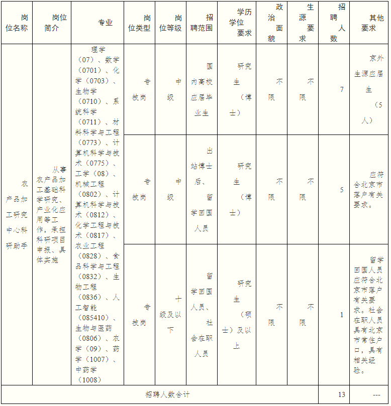 聯系單位:中國農業科學院農產品加工研究所人事處