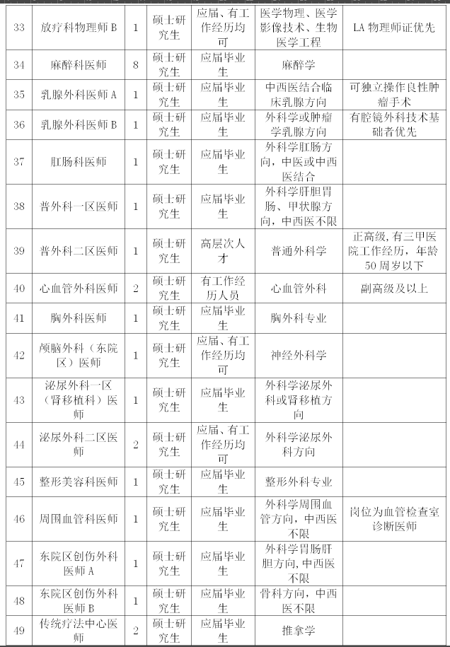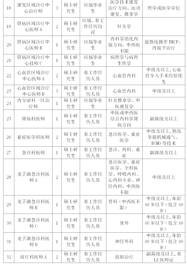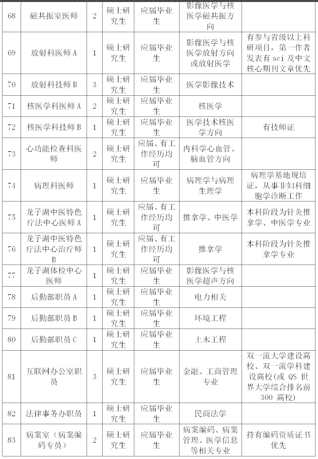 7.有工作經(jīng)歷:要求全日制學歷,年齡原則上要求1990年1月1日及以后出生,有三甲醫(yī)院工作經(jīng)歷,其他條件參照具體崗位要求。