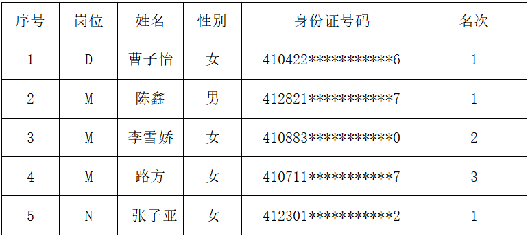經網上報名、資格審查、面試等程序,現將擬聘用人員名單予以公示。