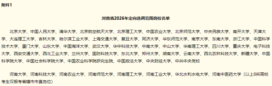附件:1.河南省2026年定向選調(diào)范圍高校名單