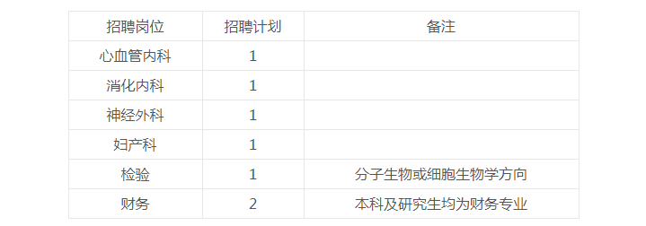 根據(jù)醫(yī)院發(fā)展需要,現(xiàn)招聘以下崗位人員,具體要求如下: