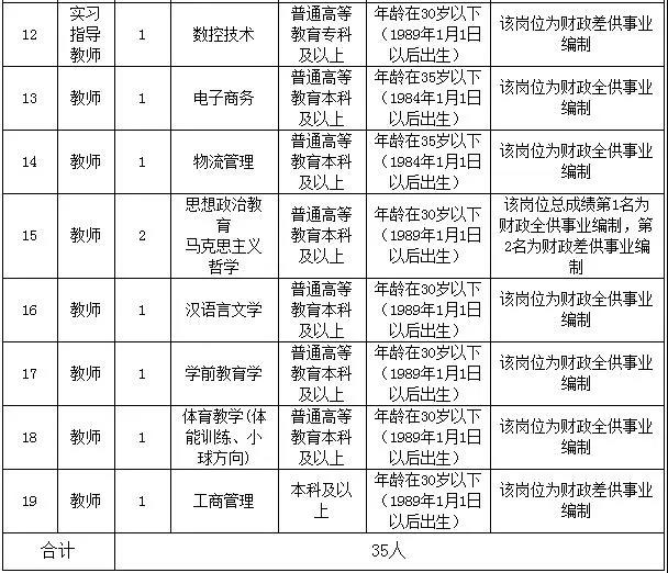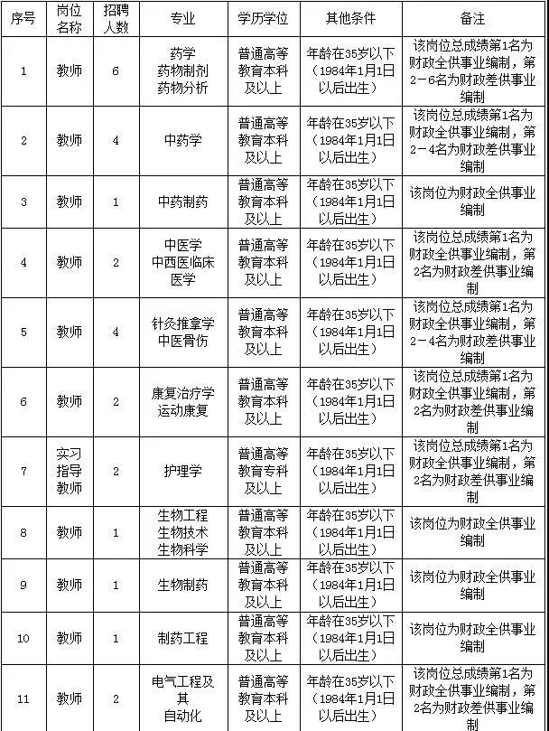 本次公開招聘教師35名,招聘的具體專業、人數、崗位要求詳見附件《河南醫藥技師學院2019年公開招聘教師一覽表》(附件1)。