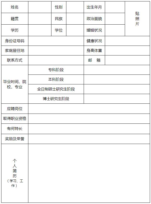 2.河南醫藥技師學院2019年公開招聘教師報名表