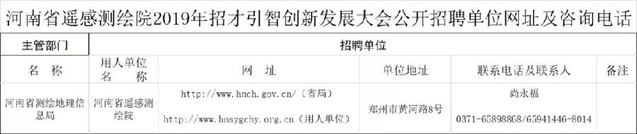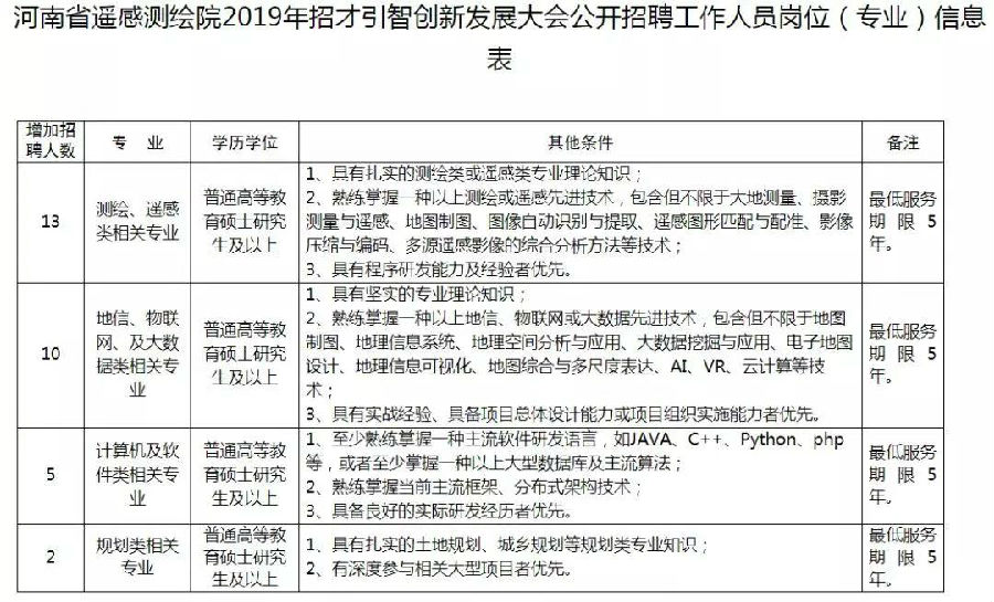 河南省遙感測繪院2019年招才引智創新發展大會公開招聘工作人員方案