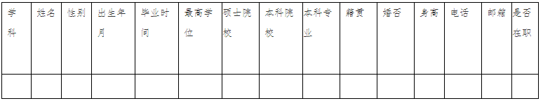 有意應(yīng)聘的,請將個人詳細(xì)簡歷和電子信息表發(fā)送到招聘郵箱。郵件標(biāo)題為:學(xué)科+姓名+畢業(yè)學(xué)校(如:音樂+張三+河南大學(xué))。用excel制作電子信息表(請一定按格式要求填寫,某項條件不具備的,該項可不填)。