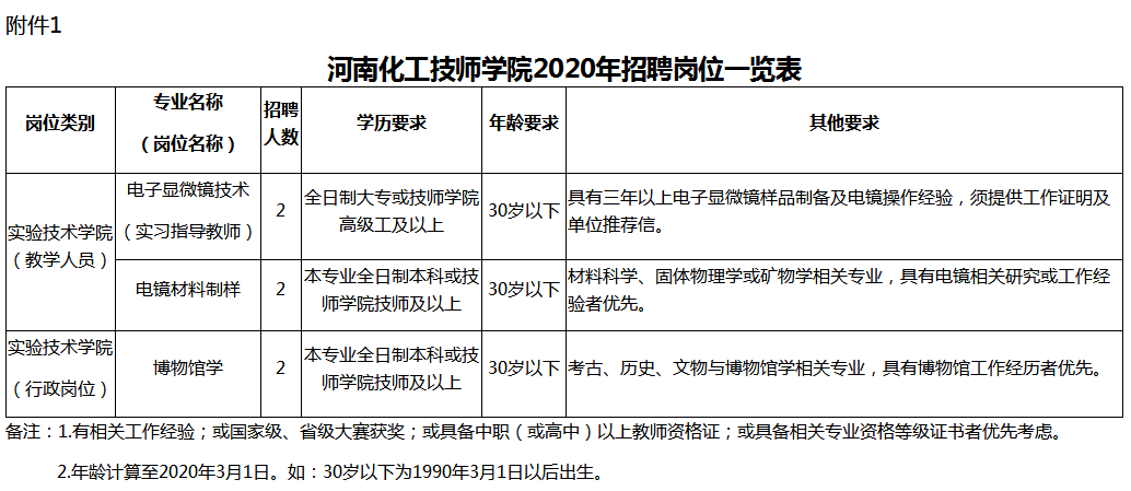 根據學院發展需要,擬面向社會公開招聘工作人員6名,詳見《河南化工技師學院2020年招聘崗位一覽表》(附件1)。