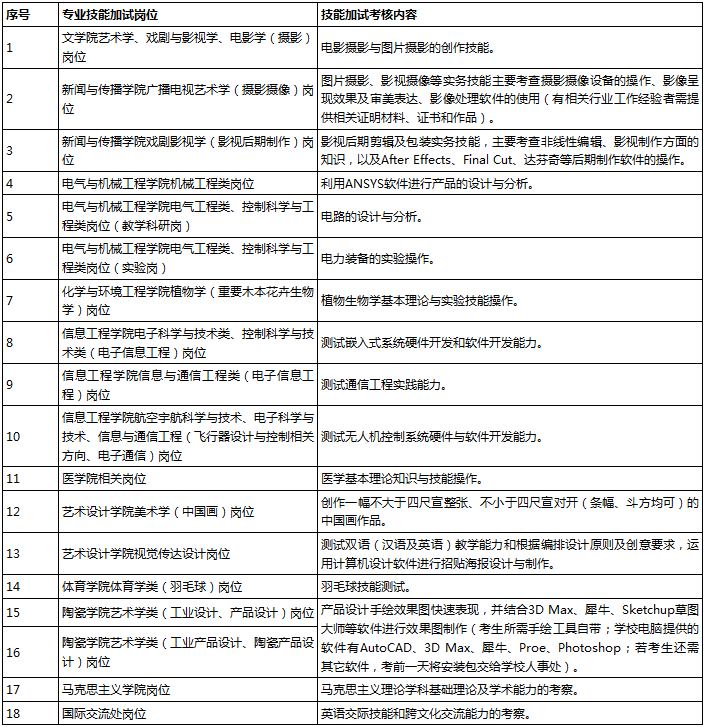 注:專業(yè)技能加試結(jié)束后當(dāng)天在學(xué)校人事處主頁公布成績;專業(yè)加試合格者(≥60分)進(jìn)入筆試。