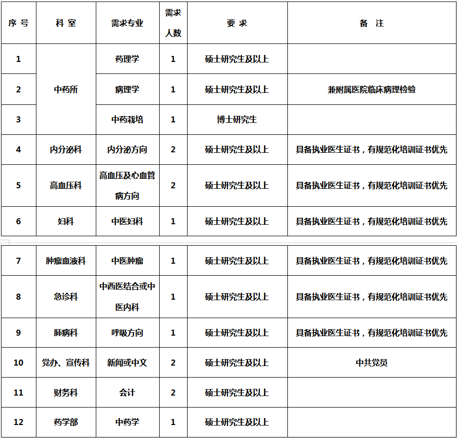 (五)崗位所需的專業和其他條件詳見附表1《河南省中醫藥研究院2020年公開招聘人數一覽表》。