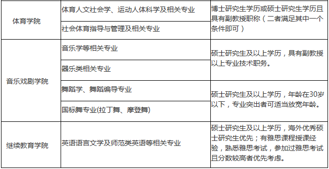 國內外大學日語、體育、音樂學等專業博士研究生,研究方向與所授課程專業一致或相近,具有一定的學術水平和學術發展潛力,并取得相應學術科研成果。