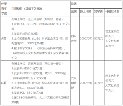 招聘的優(yōu)秀青年學(xué)者聘為我校“仲景青年學(xué)者”,分為兩個(gè)類別,具體引進(jìn)條件如下,待遇不低于以下標(biāo)準(zhǔn):