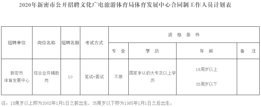 根據(jù)工作需要,經(jīng)新密市政府批準(zhǔn),決定面向社會公開招聘新密市文化廣電旅游體育局體育發(fā)展中心合同制工作人員10名,協(xié)助開展相關(guān)工作。