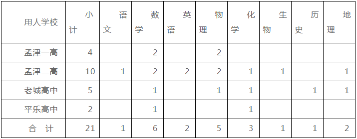 2.孟津縣第二高級中學、老城高中、平樂高中招收國家計劃內統一招收的全日制院校師資類專業本科及以上學歷應屆畢業生,申報專業與學歷專業一致。