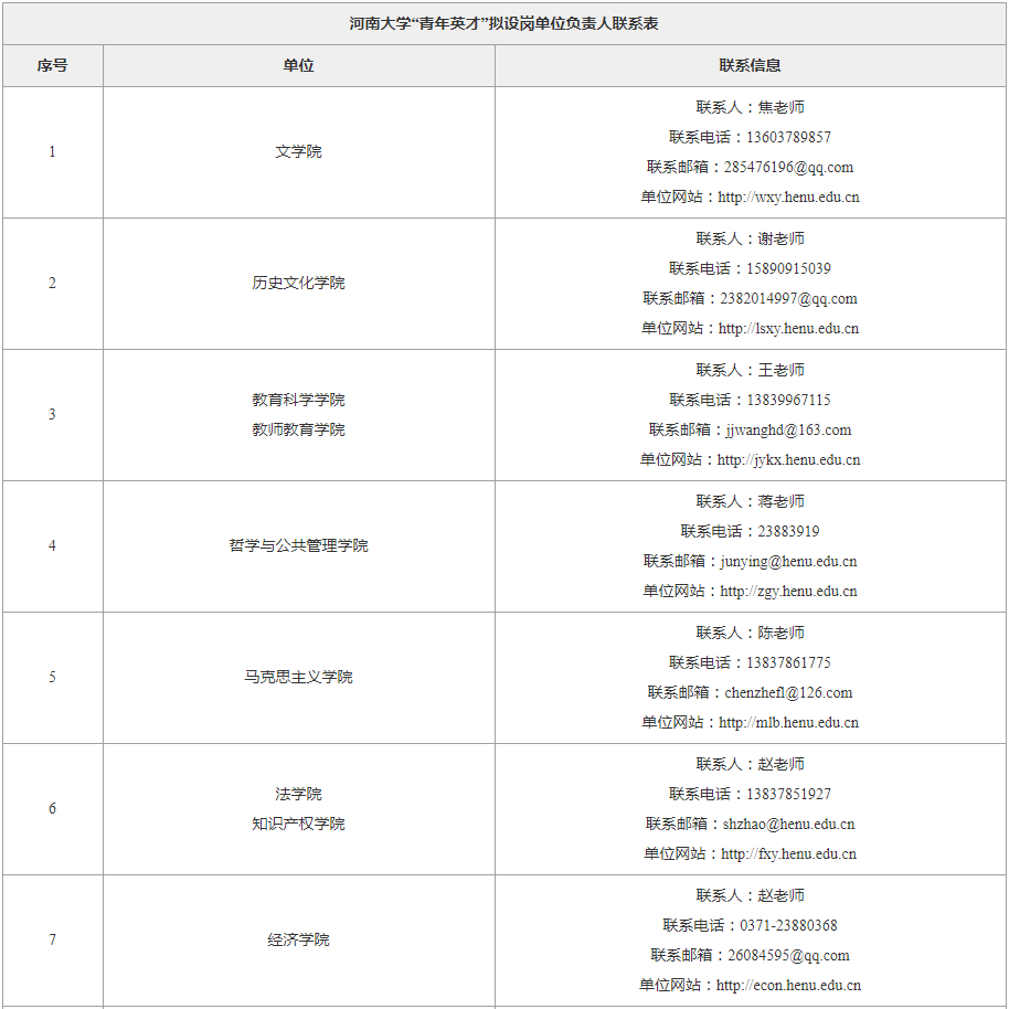 1、河南大學"青年英才"擬設(shè)崗單位負責人聯(lián)系表(附后)
