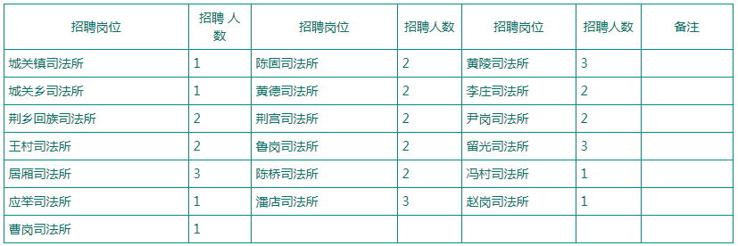 結合我縣社區矯正工作實際情況和基層司法所隊伍建設情況,決定向普通高校應往屆畢業生招聘26名,向退伍軍人招聘10名。崗位設置如下: