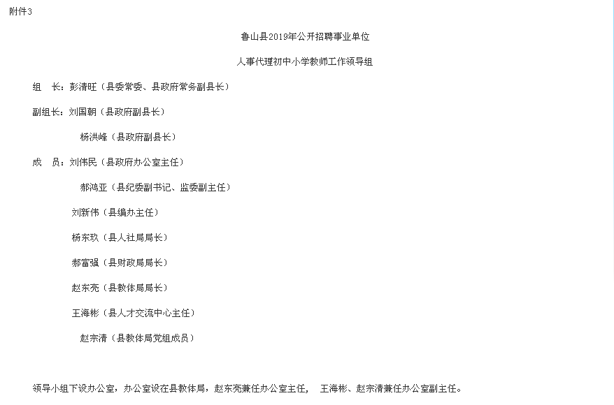 3.2019年魯山縣公開招聘初中小學教師工作領導組.