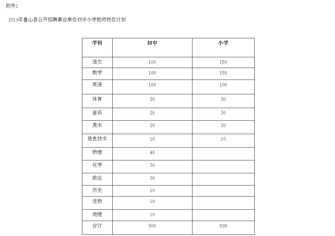 附件:1.2019年魯山縣公開招聘事業單位初中小學教師崗位計劃.
