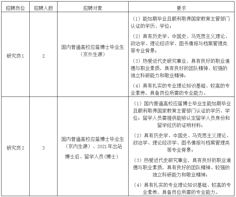 中國社會科學院近代史研究所2021年第一批專業技術人員招聘公告