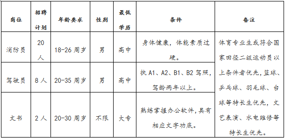 此次計(jì)劃招聘政府專職消防員30名,錄取人員培訓(xùn)考核合格后在滎陽(yáng)市各消防救援站工作,具體招聘計(jì)劃如下: