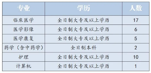 醫生:全日制大專及以上學歷,取得規培證、執業醫師資格證、貧困學生等,優先錄取,待遇從優;