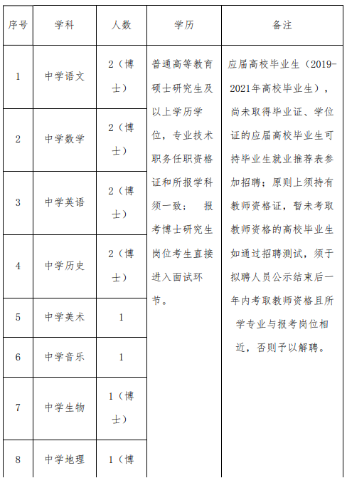 (3)暫未考取教師資格的高校畢業生如通過招聘,須于一年內考取教師資格且所學專業與報考崗位相近,否則予以解聘。