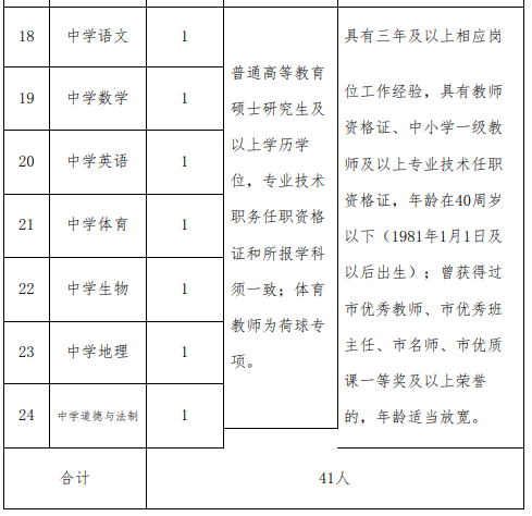 4.崗位所需的專業和其他條件(詳見附件《鄭州大學第一附屬中學2021年公開招聘教師一覽表》)。其中1-17號崗位要求2019-2021年高校畢業生,年齡在30周歲以下(1991年1月1日及以后出生)。18-24號崗位招聘在職優秀教師,具有三年及以上相應崗位工作經驗,具有教師資格證、中學一級教師及以上專業技術任職資格證,年齡在40周歲以下(1981年1月1日及以后出生)。