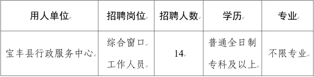 寶豐縣2021年公開招聘行政服務中心綜合窗口工作人員(勞務派遣)公告