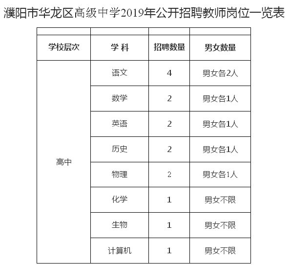 附件:1、濮陽市華龍區高級中學2019年公開招聘教師崗位一覽表