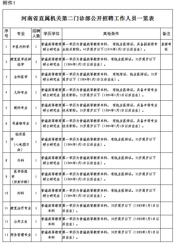 附件:1.《河南省直屬機關(guān)第二門診部2019年公開招聘工作人員一覽表》