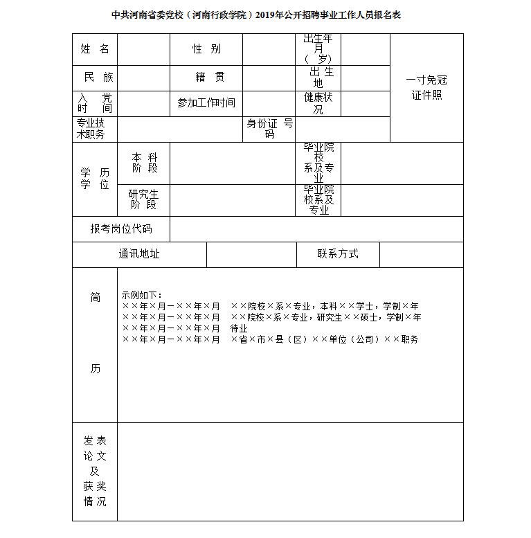 2.中共河南省委黨校(河南行政學院)2019年公開招聘事業工作人員報名表
