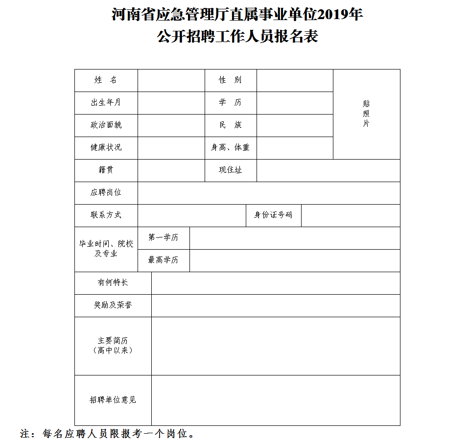 (1)填寫完整的《河南省應(yīng)急管理廳直屬事業(yè)單位2019年公開招聘工作人員報(bào)名表》(附件2);