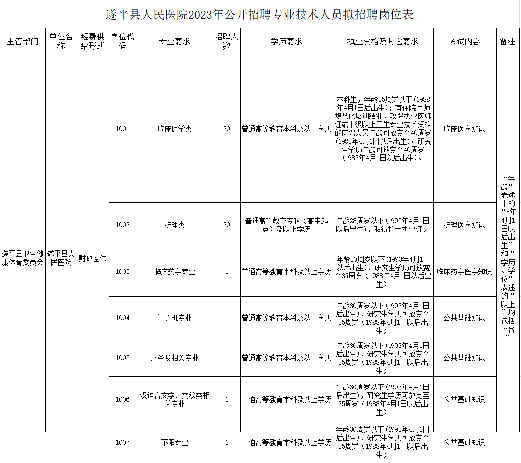 5、遂平縣域內公立醫療衛生單位2023年4月19日前在冊在編人員不得報考;“369人才工程”、三支一扶等專項計劃未滿服務期限的人員不得報考;