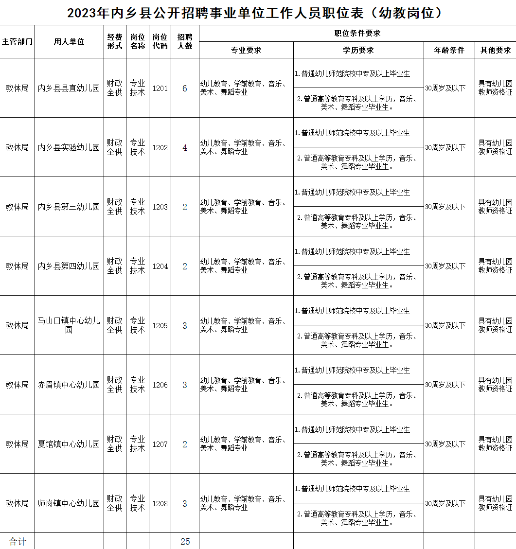 附件2:2023年內鄉縣公開招聘事業單位工作人員職位表(教師崗位)
