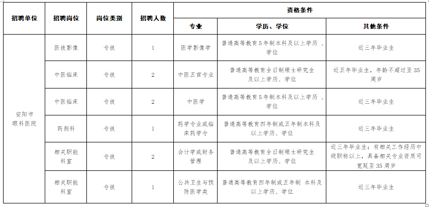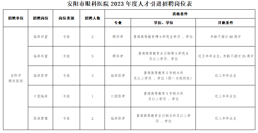 安陽(yáng)市眼科醫(yī)院安陽(yáng)市視光中心2023年度人才招聘(引進(jìn))公告