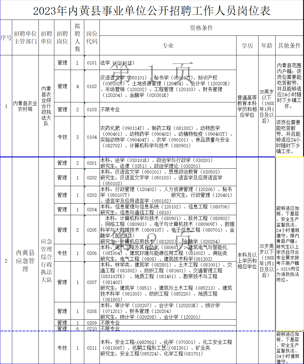 具體招聘崗位數量、范圍、對象、條件見《2023年內黃縣事業單位公開招聘工作人員崗位表》(附件1)。