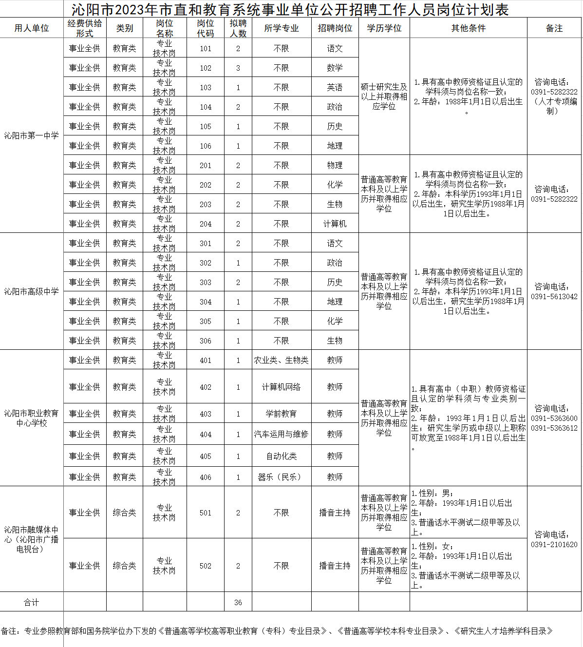 焦作沁陽(yáng)市2023年市直和教育系統(tǒng)事業(yè)單位公開(kāi)招聘工作人員簡(jiǎn)章