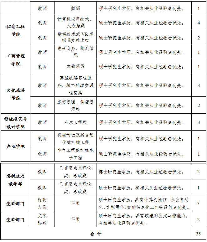 根據學校發展需要,2023年面向社會招聘35名專任教師。